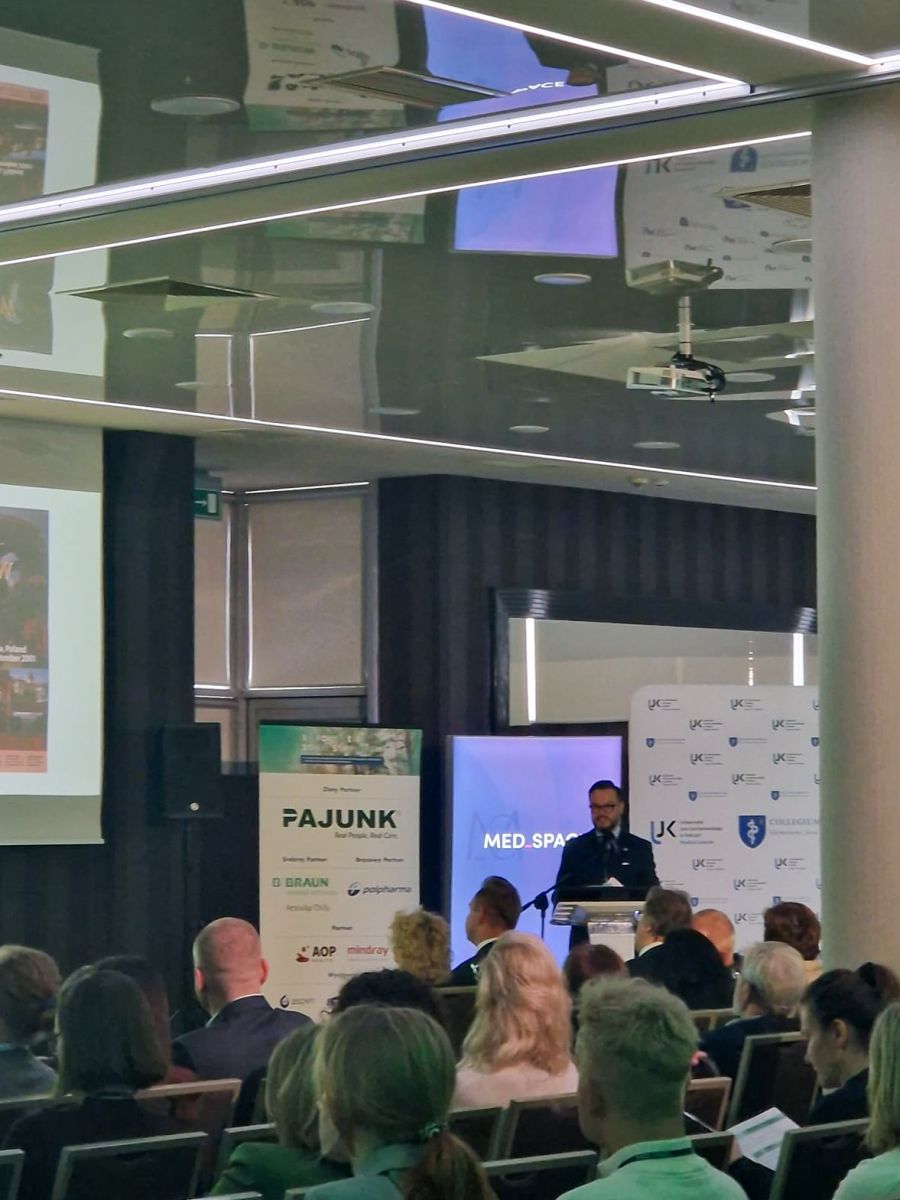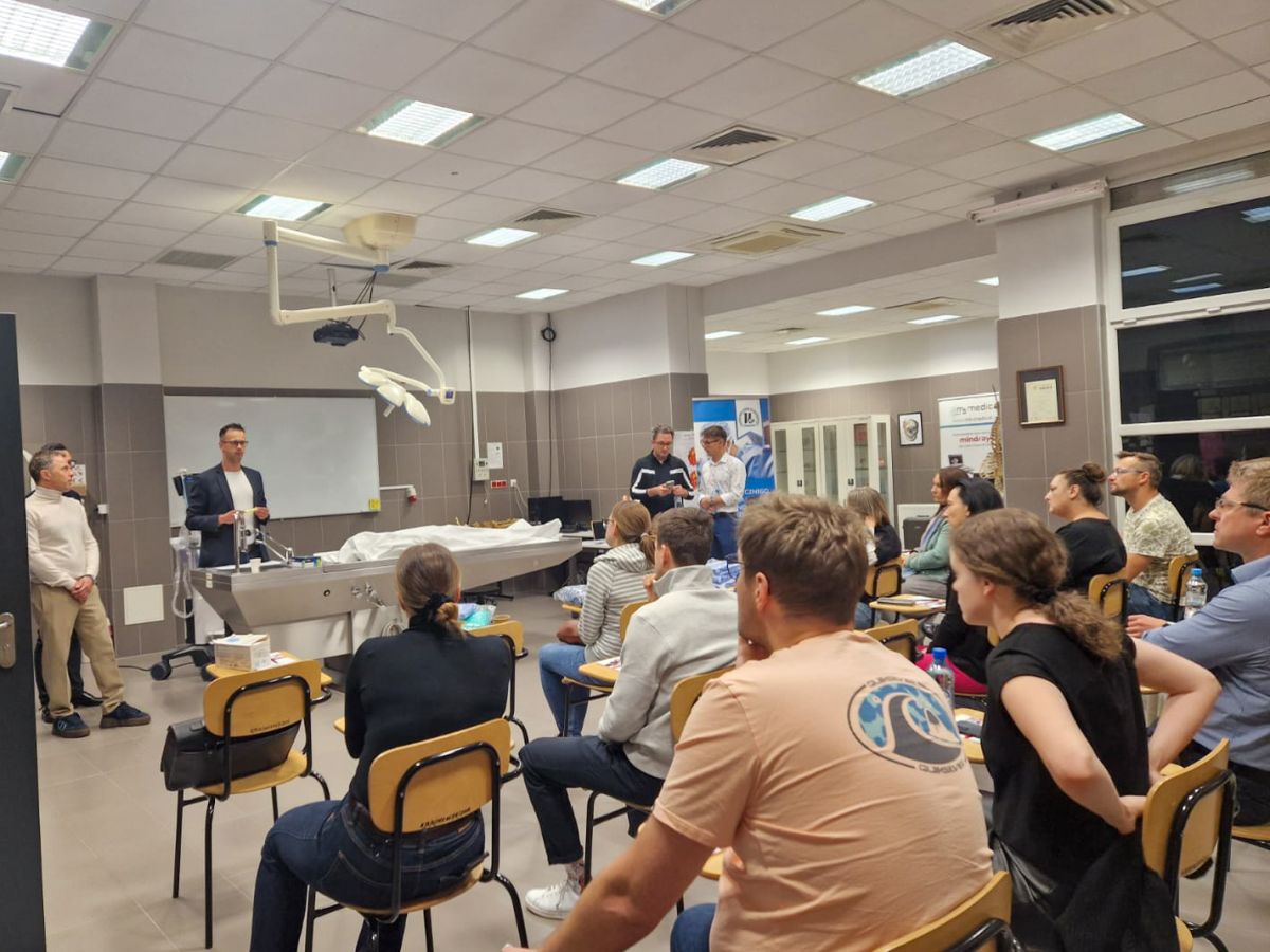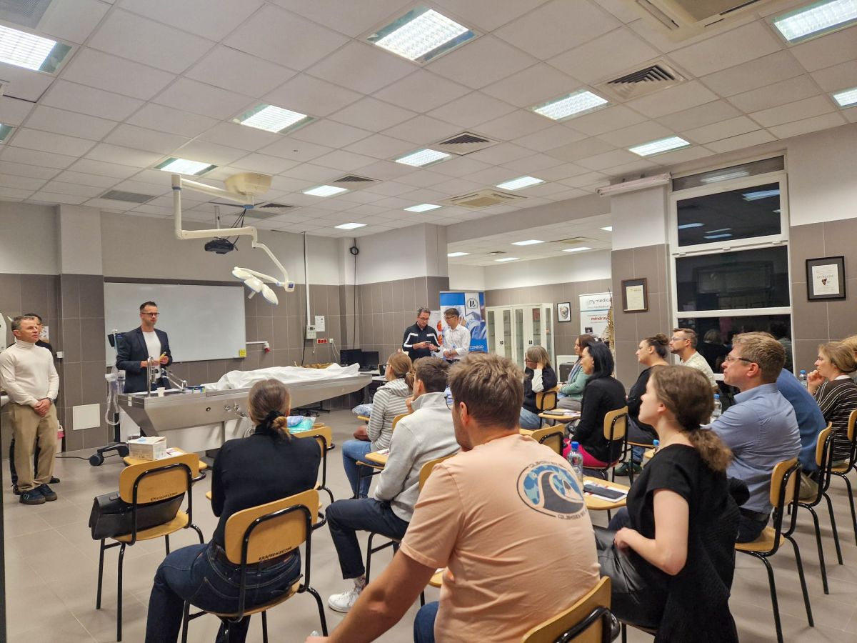 Jubileuszowy XV Zjazd Polskiego Towarzystwa Znieczulenia Regionalnego i Leczenia Bólu (XV POLISH ESRA ZONAL SYMPOSIUM), który odbył się w dniach 3- 5 października 2025 roku. Konferencja skierowana była do osób chcących poszerzać swoją wiedzę w zakresie anestezjologii regionalnej, medycyny bólu oraz szeroko pojętej medycyny okołooperacyjnej. Na zdjęciach uczestnicy warsztatów ,,Blokady regionalne w obrębie kończyny górnej i dolnej oraz podstawowe blokady stosowane w medycynie bólu przewlekłego”.